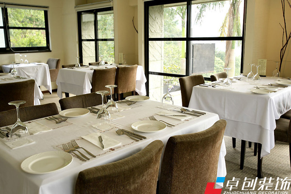 餐廳裝修中要注重地板的裝修設(shè)計,地面要選擇易清潔的材料,盡量不要使用地毯。地磚和木地板是很適合的。不潔凈的地板會直接影響餐廳形象。地板的顏色也是有講究的,一定要符合整個餐廳的設(shè)計風格,在挑選地板時要注意防滑。