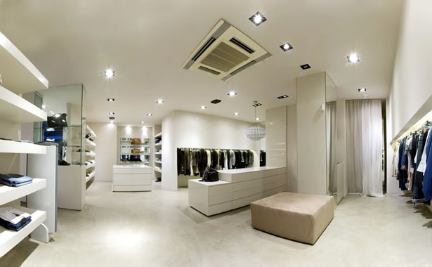 一個(gè)服裝店,燈光起著要害的效果,一樣一件衣裳打光和不設(shè)燈光出來的展示效果完全不一樣,特別是由模特進(jìn)行這些單件展示的,一定要用射燈進(jìn)行烘托,燈光的顏色也要恰當(dāng),像現(xiàn)在快要到夏季的時(shí)候,就應(yīng)該給店內(nèi)裝修的藍(lán)色系,因?yàn)樗{(lán)色光給人很冰涼、冷酷、迷幻的感觸,特別適合夏季,還有,在冬季的時(shí)候,服裝店裝修應(yīng)該裝修黃色,給人以很溫暖的感覺。