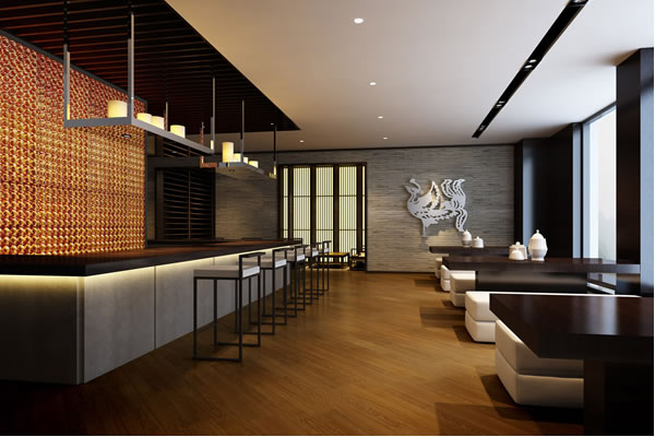 一個較大的酒吧空間可利用天花的升降、地坪的高差,以及圍欄的、列柱、隔斷等進(jìn)行多次元的空間分割。 燈飾區(qū)隔空間,利用燈飾結(jié)合天棚的落差來劃分空間,這種空間的組織手法,使整體空間具有開放性,顯得視野開闊,又能在人們心理上形成區(qū)域性的環(huán)境氛圍。 地坪差區(qū)隔空間,在平面布局上,利用改變局部地區(qū)的標(biāo)高,呈現(xiàn)兩個空間的區(qū)域,有時可以和天花板對應(yīng)處理,使底界面、頂界面上下呼應(yīng)共造空間,也可與低矮隔斷,綠色植物相結(jié)合,構(gòu)成綜合性的空間區(qū)隔手法,借以豐富空間,連續(xù)空間。
